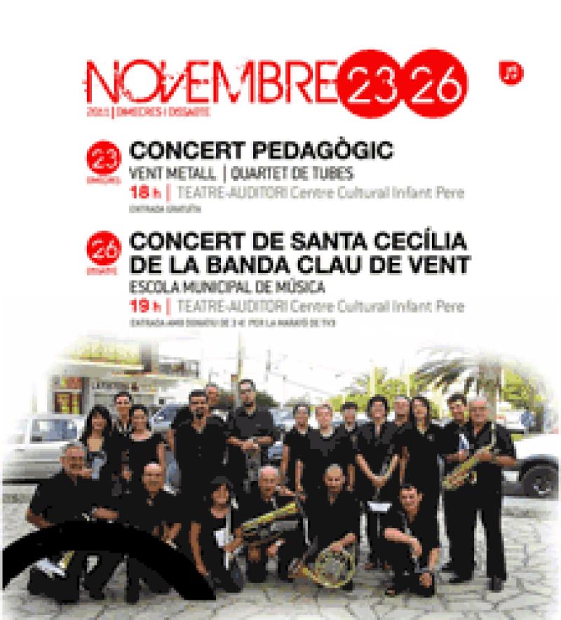 Amb motiu de la celebració de Santa Cecília, l'Escola de Música Municipal oferirà un concert pedagògic a càrrec d'un quartet de tubes-vent metall el dimecres 23 de novembre 2011, a les 18 h, al Teatre-Auditori de l'Hospitalet. Al mateix escenari hi ha previst el dissabte 26 de novembre, a les 19 h, un concert de la Banda Municipal. Els diners recaptats en aquest concert de la banda seran destinats a la Marató de TV3 (hi haurà una entrada voluntària de 3 euros)