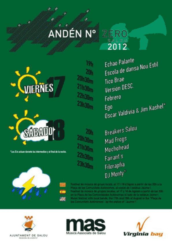 FESTIVAL ANDANA ZERO 2012 17 i 18 d'agost (a partir de les 20:30 h). Plaça de les Comunitats Autònomes. Actuació de DJ 's locals, grups de ball i grups musicals