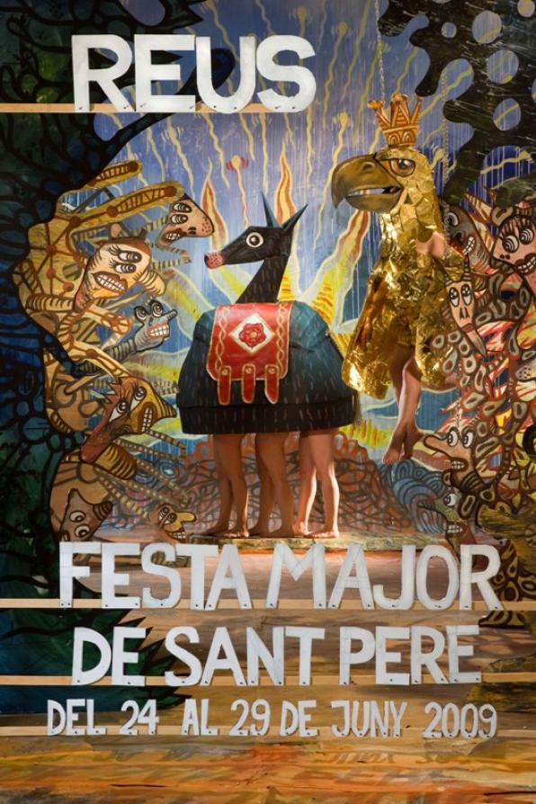 L'artista Marcel·lí Antúnez, conegut per ser un dels fundadors de la companyia la Fura dels Baus, ha estat l'encarregat de confeccionar el cartell de la Festa Major de Sant Pere d'enguany. La peculiaritat del cartell és que es tracta d'una fotografia d'una composició d'un espai real que Antúnez ha fet per a l'ocasió, amb la col·laboració dels alumnes de l'Escola d'Art i Disseny de Reus, on s'hi veuen reflectits elements com la Mulassa o l'Àliga. D'aquesta manera, la Regidoria de Cultura de Reus segueix la línia engegada l'any passat -quan el cartell estava elaborat pel dissenyador Custo Dalmau-, d'encarregar el cartell a artistes 'de primer nivell'. La relació de Marcel·lí Antúnez amb la ciutat de Reus es remunta a l'any passat quan l'artista va portar a Reus 'Metamembrana', una instal·lació audiovisual interactiva que s'ha desenvolupat a les ciutats catalanes de Lleida, Olot, Reus, Granollers i Barcelona. Més tard, la Regidoria de Cultura va encarregar-li la realització del cartell de la Festa Major de Sant Pere de Reus que s'ha materialitzat amb la col•laboració dels alumnes de segon curs d'Arquitectura Efímera de l'Escola d'Art i Disseny de Reus. Entre els alumnes i l'artista van donar forma a la idea del cartell que es va acabar portant a terme a l'estudi que Antúnez té a Barcelona. L'objectiu era crear una gran composició en un espai real i fotografiar-la. El resultat és un petit escenari, amb l'estètica característica de Marcel•lí Antúnez, on hi figura la Mulassa com a element central, i l'Àliga assentada en un trapezi. Amb la finalitat que els reusencs puguin veure el treball efectuat per la confecció del cartell, la regidora de Cultura Empar Pont ha anunciat que durant els dies de la Festa Major, aquesta composició estarà exposada als jardins de la Casa Rull