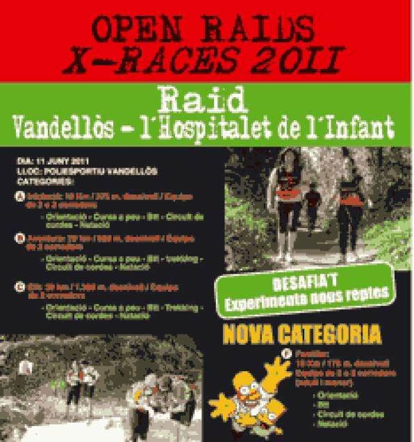 Vandellòs. Costa Daurada. El proper dissabte 11 de Juny de 2011 s’organitza el Raid d’Aventura Open X-Race Vandellòs i L’Hospitalet de l’Infant. La cursa consisteix en un raid d’aventura a on es combinaran disciplines de BTT, trekking, orientació, circuits de cordes i natació. Hi haurà 5 categories d’inscripció per tal que tothom gaudeixi segons el seu nivell: Iniciació, amb 22km i 425m de desnivell; Aventura amb 37km i 935m de desnivell; elit X-Race i elit SOLO amb 45km i 1.400m de desnivell; i la nova categoria per al 2011: Family, a on els pares i mares poden gaudir de l’aventura juntament amb els més petits de cada familia. La cursa d’aventura serà la tercera prova dels Open Raid X-Races 2011: circuit de 5 proves a Catalunya amb diferents nivells de cursa, cronometratge electrònic i un alt nivell de participació. Un total de 70 equips procedents de tota Catalunya, Saragossa, València i Andorra es donaran cita a la prova que tindrà la sortida a les 10h des del poliesportiu municipal de Vandellòs. L’arribada serà a les 18’30h i l’entrega de premis a les 19h. Tota la cursa està centrada a l’entorn de Vandellòs, Masboquera i Remullà.