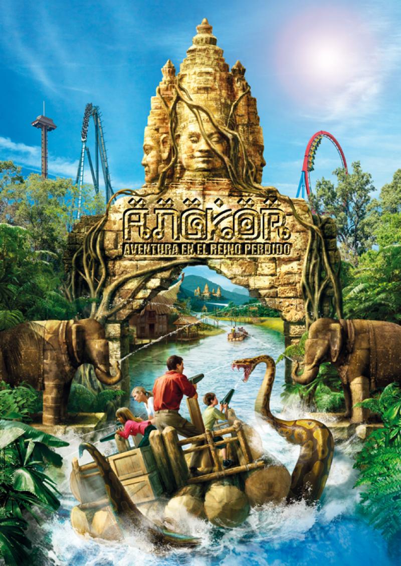 Angkor és una atracció aquàtica d'uns 300 metres de recorregut que els visitants faran en unes embarcacions pneumàtiques des de les quals hauran de defensar-se dels perills de la selva, armats només amb escopetes d'aigua. Angkor: Aventura al regne perdut s'inspira en el temple cambodjà d'Angkor Wat, considerada l'estructura religiosa més gran del món, envoltada de grans selves i declarada el 1992 Patrimoni de la Humanitat.