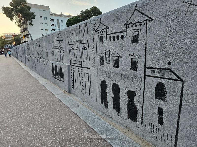 s'hi ha pintat un mural d'uns 80 metres de longitud on es representen els elements més destacats de Salou com els xalets modernistes, el far, l'església de Santa Maria del Mar, els vaixells de pesca, els nius de metralladores…