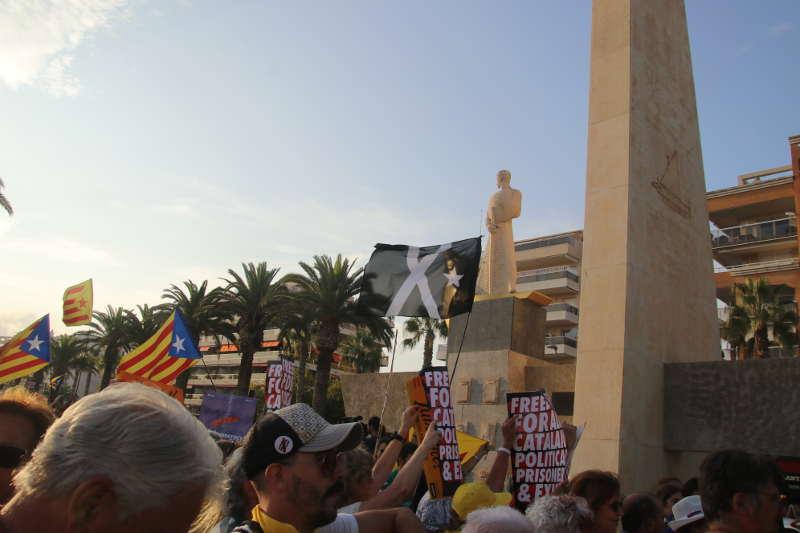 El moment de major fricció es va viure al pas de la manifestació davant del monument al rei Jaume I, quan alguns unionistes van sacsejar a un manifestant que onejava una bandera estelada. La intervenció dels agents de la policia va restablir l'ordre, tot i que la crispació i les provocacions van continuar, sobretot per part unionista, alhora que corejaven Espanya Espanya i entonaven el lololo de l'himne espanyol. Els unionistes van celebrar al llarg del recorregut que alguns estiuejants, amb banderes espanyoles als balcons, van sortir a donar-los ànims, encara que finalment el gruix unionista va sumar a poc més d'un centenar de persones,altres amb samarr algunes amb motxilles de VOX, altres amb samarretes de la legió o altres amb diversa simbologia espanyola.Al final de la manifestació els unionistes es van situar davant de la Font Lluminosa i van quedar separats dels independentistes per diverses furgonetes dels Mossos d'Esquadra que aquest cop sí, visiblement, van separar als dos grups.