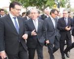 Salou. Costa Daurada. L'empresari salouenc Xavier Blasi ha rebut avui, 2 d'abril de 2012, la visita de l'alcalde de Salou, Pere Granados i, acompanyats del regidor d'Esports, Felip Ortiz, han fet un recorregut per les instal·lacions del nou Complex Esportiu Futbol Salou, un equipament que compta amb diversos camps de futbol...