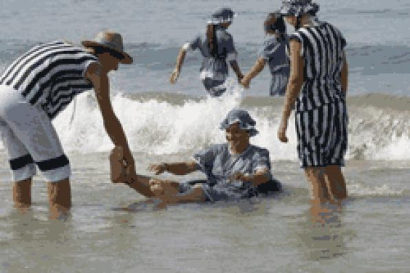Salou. Costa Dorada. It's been twenty-eight years since a group of enthusiastic and reusenques Reus, taking advantage of the structure and organization of the of Carnival from Reus, they forward the idea of going to swim in summer Salou in their traditional costumes and swimwear, as did their grandparents and great grandparents, that is on foot, by bicycle, in cars and other old stuff, making stops at Mas Calvó clotxa the typical breakfast of beans and herring to to regain strength and has returned to resume the march to get to Salou from Levante beach, next al'espigó, where he had installed a large canvas, which served to gangs for protection from the sun, eat and do the traditional siesta. The groups took the first car of the year, obviously the women separated from men. Thus was born, rather than traditional, old Reus - Salou - Reus Reus organized by the Federation of Associations of Carnival, Reus 1998 (FRAC) with the collaboration of Tourism of Salou and Reus. The event has managed to survive to modern times, that is, to the great movement of cars, traffic and safety rules imposed by the competent authorities, the philosophy changed a bit the groups in Salou. Today is the low tourist train from Salou, vintage cars, motorbikes and a couple of coaches, the groups continue to mount awnings, playing games typical of the twenties and taking the first bath with your bathing suit on for the time, remembering that each group has its own pattern and color swimsuit, the west beach near the port. So, on Sunday July 10 at 9 am and after notice of a rocket flying, will the group of the Plaza del Mercadal de Reus, some on foot and one on the tourist train from Salou towards bus station, from where the participants in their traditional dresses and bathing suits will come together towards Salou. Upon arrival take the first car of the year. The following will take place and several typical games such as beach, pull the rope, fishing apples, scarf play, football game, the typical game of cards between groups, etc. .. after a good meal and a more than deserved nap. At seven o'clock in the afternoon s'emprendrà return to Reus. Bringing closure to the Plaza Mercadal is where you will by the FRAC, the traditional cake in the corresponding soft "Plim". We used to remember that this event is open to anyone who wants to participate