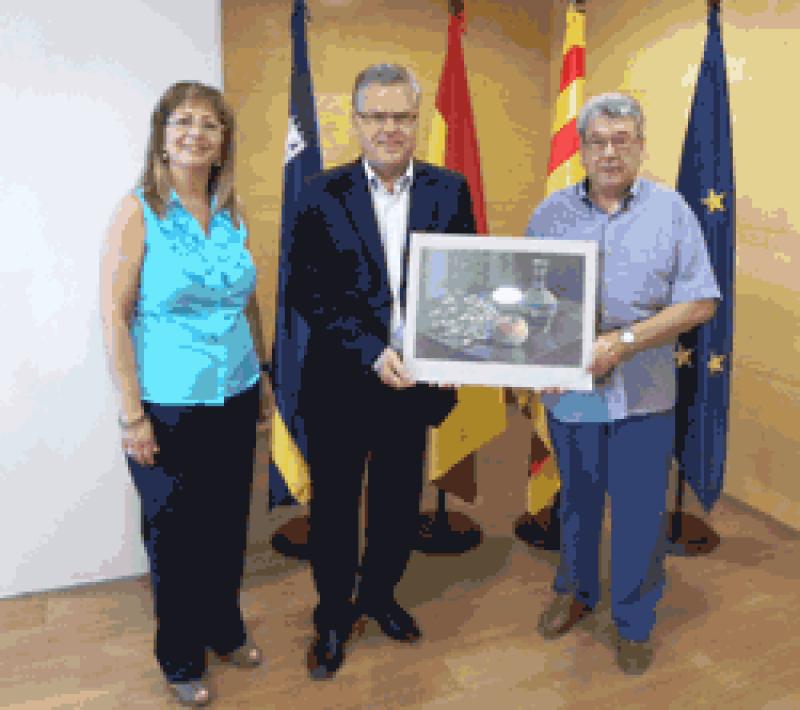 Salou. Costa Dorada. The Mayor, Councillor Pere Granados and Culture, Maria Jose Rodriguez, received from the hands of the artist Llorenç Cervello a still life in gratitude for the support received from the City towards the group of Russian painters "La Palette du Monde ". It is basically a box that engruixirà municipal art. The facts date back to last July when the Association of Russian Language and Culture Dostoyevsky Salou requested to the Department of Culture to have a space to CAS in order to perform a free musical concerts and open to everyone to hold dual in Spain to Russia - Russia to Spain and that is why they invited a group of Russian painters of the association "La Palette du Monde" as a welcome event. For the assignment of space for free Mr. Llorenç Cervello representative of the Association of Painters wanted to deliver a picture as thanks.