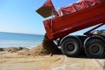 Salou. Costa Dorada. 14 February 2020. Salou is already working to make the beaches ready for the beginning of the tourist season, which is during Holy Week. Specifically, 15,000 cubic meters of fine sand are transferred from the beaches of Ponent and Llevant to the Llarga beach, the Llenguadets cove and the Capellans beach.
