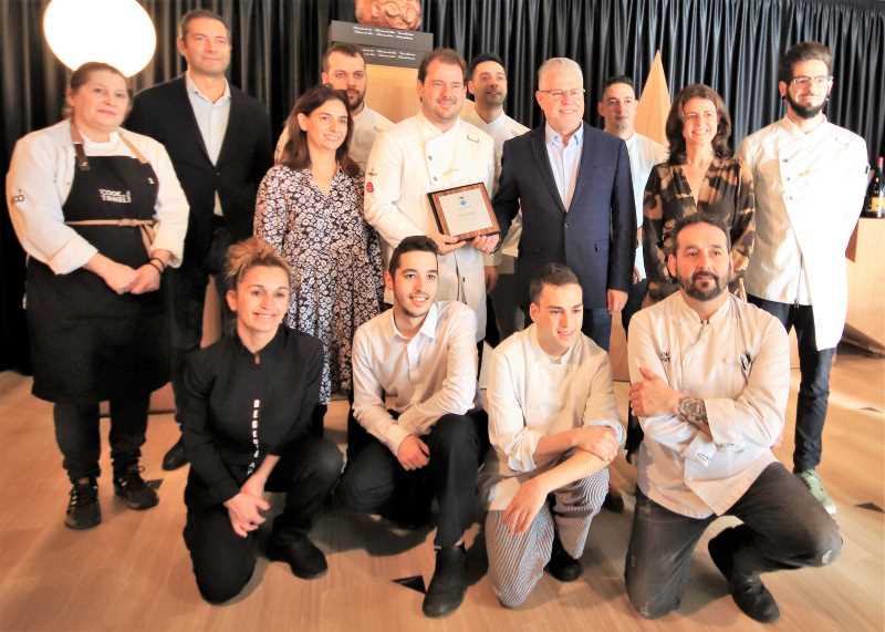 Salou. Costa Dorada. 01 December 2019. On behalf of the City Council of Salou, the mayor, Pere Granados, accompanied by the Councilor for Economic Dynamization, Héctor Maiquez, has delivered a plaque of recognition to chef Pep Moreno, of the Deliranto restaurant, for the Michelin star recently obtained in Seville. Deliranto is the first to receive this distinction in Salou.