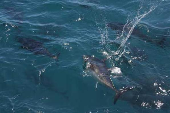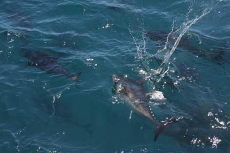 Within a few minutes we bathe in contact with the Mediterranean bluefin tuna. We stand lifejackets, immersion glasses and little by little, we are entering the sea. The water temperature is about 22 degrees. Once acclimated in water we remain still on the surface, almost motionless. It is the best position for watching tunas groups with whom we share the bathroom. The experience is unique, pass over and over again and feel is of constant surprise.