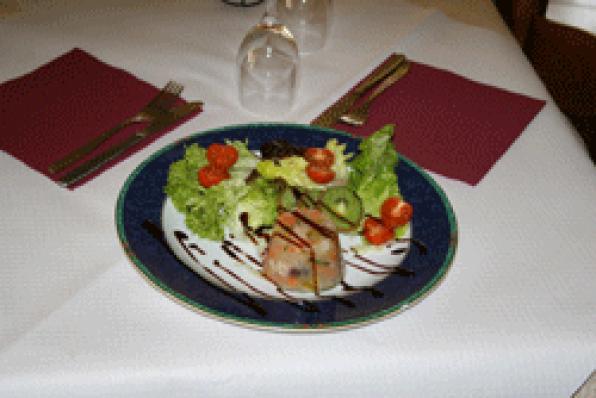 Cocinero: Josef Schmidt Tipo de cocina: Internacional Capacidad: 34 personas Horario: De 18.30 a 23.00h, Los domingos fuera de temporada, también de 13.00 a 15.00h. Descanso semanal: Martes Precio: 29 euros Dirección: c/.Blanca d’Anjou, 12 – L’Hospitalet de l’Infant Entrante: Crema de calabaza con ganchitos. Primer plato: Gelatina de atún y gambitas sobre ensalada mixta. Segundo plato: Solomillo de buey con “ceps” y guarnición. Postre: Crepes de canela con ensalada de naranja. Bodega: Casa Honda Crianza.     Gelatina de atún y gambitas Ingredientes para 4 personas - 400 gr. de atún - 100 gr. de gambitas - ½ litro de fondo de pescado - 10 hojas de gelatina - 1 zanahoria - 1 puerro - 1 rama de apio - Sal y pimienta - Vinagre balsámico - Azúcar RECETA Hervir el fondo de pescado con la verdura limpia y cortada en daditos. Condimentar con sal, pimienta, vinagre y azúcar. Añadir la gelatina previamente remojada en agua fría y el atún cortado a dados y las gambitas. Verter en un molde rectangular. Dejar enfriar en el frigorífico durante un mínimo de 12 horas. Cortar en lonchas de un dedo de grosor y decorar con la crema del balsámico.