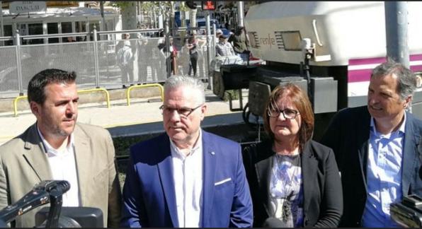 Salou. Costa Dorada. 02 mayo 2018. Los alcaldes de los cuatro municipios del litoral afectados por el desmantelamiento de las vías -desde Salou a Vandellòs- han decidido tener una actitud activa para reclamar la urgencia de estos trabajos. Con esta finalidad, los alcaldes de Salou, Pere Granados; de Mont-roig del Camp, Fran Morancho; de Vandellòs i l'Hospitalet de l'Infant, Alfons Garcia; y de Cambrils, Camino Mendoza, han acordado hoy, en una reunión celebrada en el Ayuntamiento de Salou, pasar a la acción con dos primeras iniciativas, después de reclamar insistentemente al Gobierno Central una respuesta sobre el desmantelamiento de la línea ferroviaria de la costa, y haber recibido por respuesta el silencio, la indiferencia y el olvido.